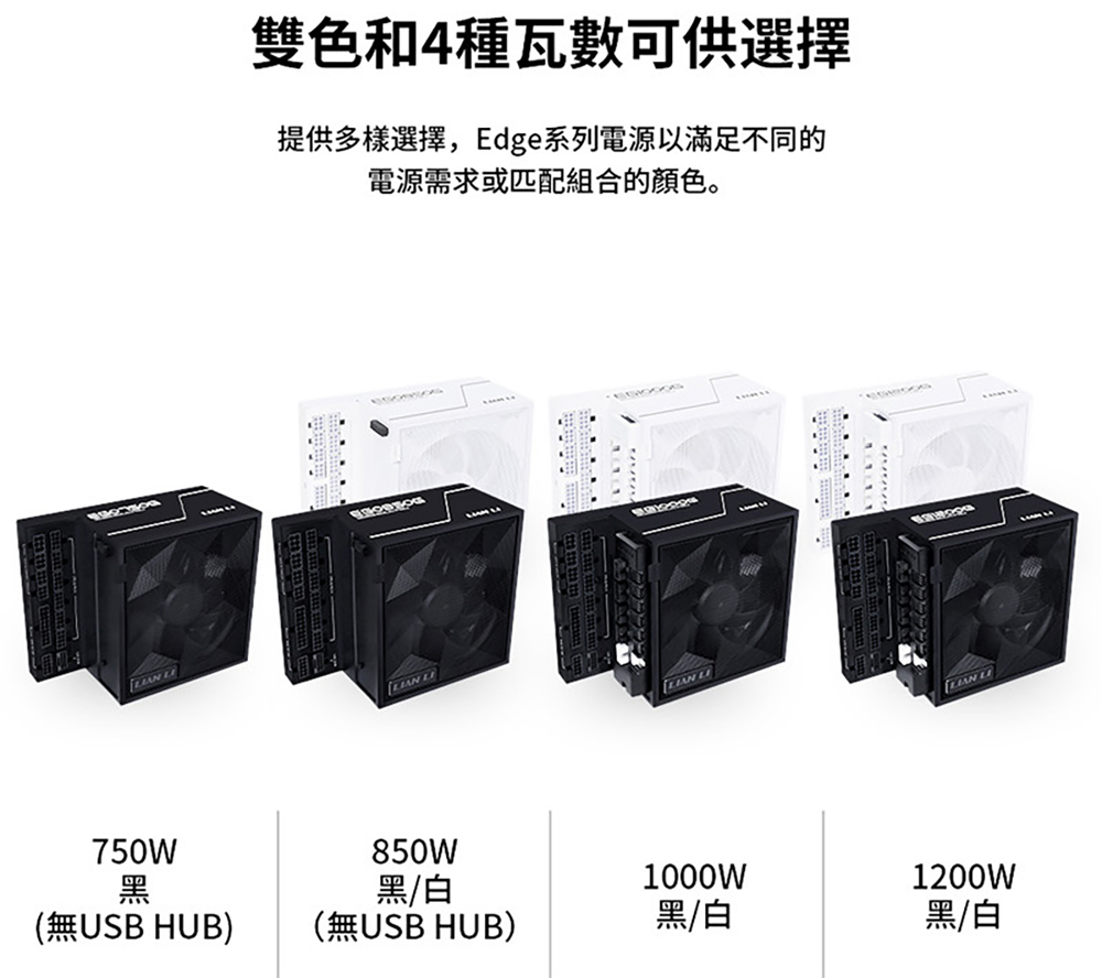 LIAN LI 聯力 EDGE 850 分艙機殼專用 850W 白金電源供應器(黑)