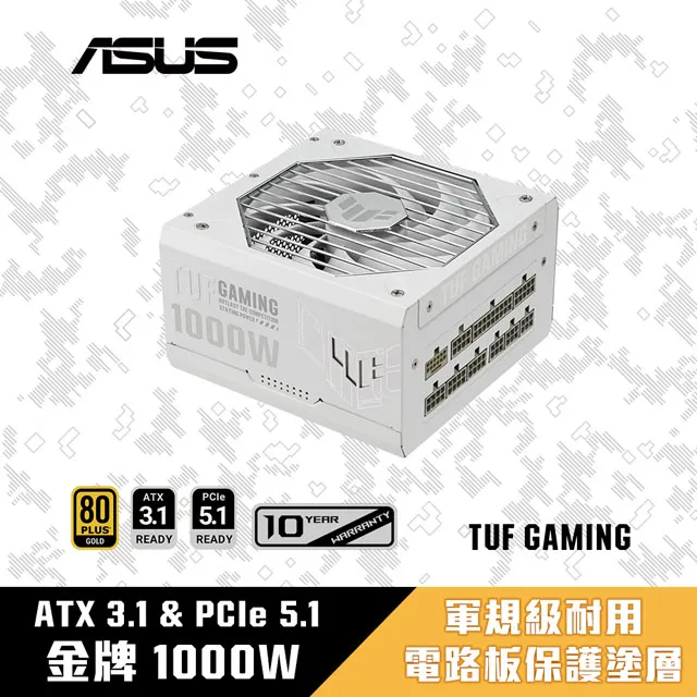 ASUS 華碩 TUF GAMING 1000W 軍戎白 ATX3.1金牌 電源供應器(TUF-GAMING-1000G-WHITE)