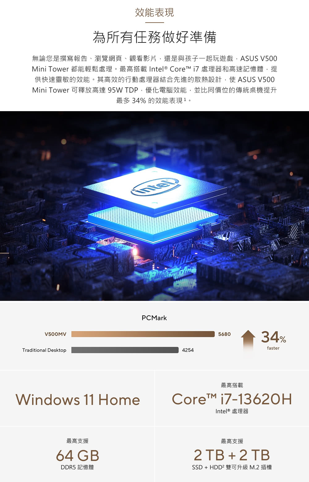 ⚡24H出貨☄️華碩高階商務用⚡ I3-1315U 14核20緒/8G 3200/512G SSD 桌上型電腦(含W11及OF2021專業板)
