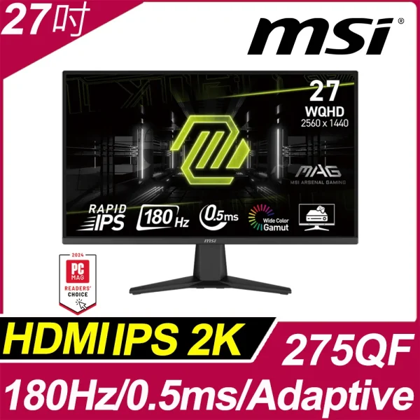 MSI 微星 MAG 275QF 27型 IPS WQHD 180Hz 電競螢幕(0.5ms/HDR)
